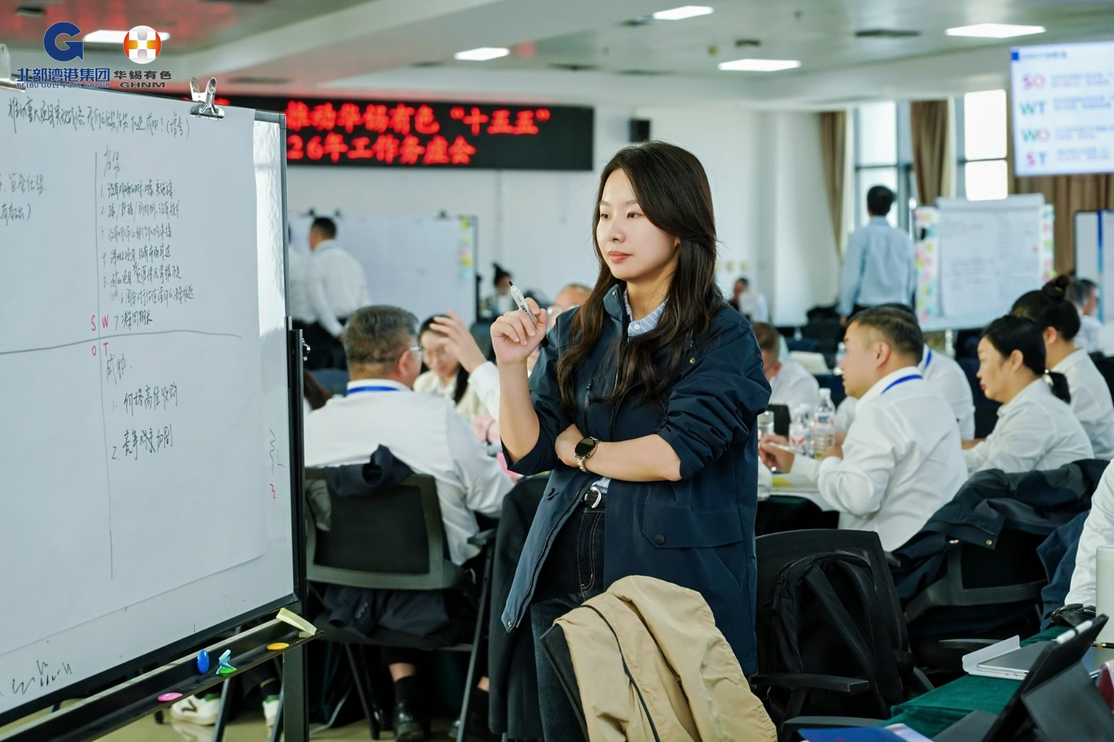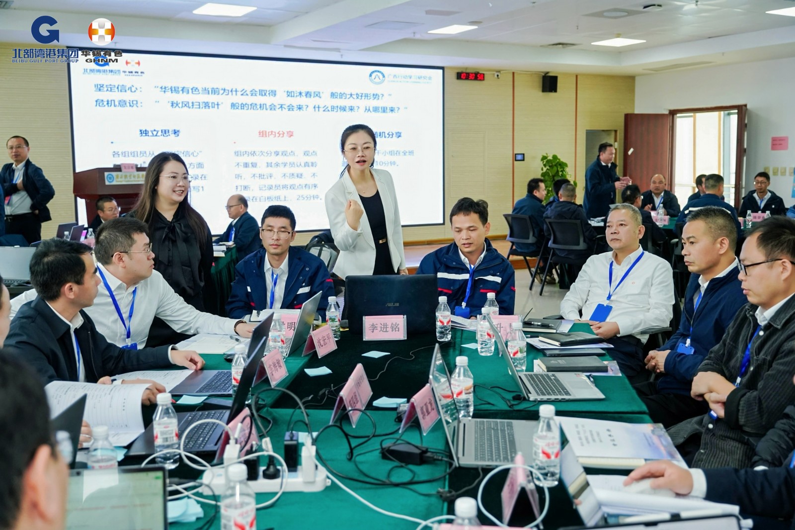 一个人的努力是加法,一个团队的努力是乘法!在研讨过程中,协同的价值被反复印证和强调。各组在讨论中自发形成了紧密的协作网络。九个小组紧扣九大议题,运用 SWOT 工具剖析优劣势与机遇挑战,经组内澄清聚焦形成共识,并对照 “锻造资源掌控力、行业引领力、 世界影响力” 评估支撑度,确保施策精准。资源保障组与科技赋能组一起,将目光投向过去被忽视的尾矿资源,共同探索如何“变废为宝”;市场营销组与重大项目推进组并肩谋划,既要“走出去”获取资源,也要让产品“走进去”占领市场;管理提升组与组织建设组则从不同角度思考同一个问题——如何让大家的努力看得见、获得应有的认可。华锡各个部门正在打破“各管一段”的思维定式。从资源勘探到市场服务,从技术攻坚到团队激励,一条更畅通、更高效的价值链条正在共识中浮现。